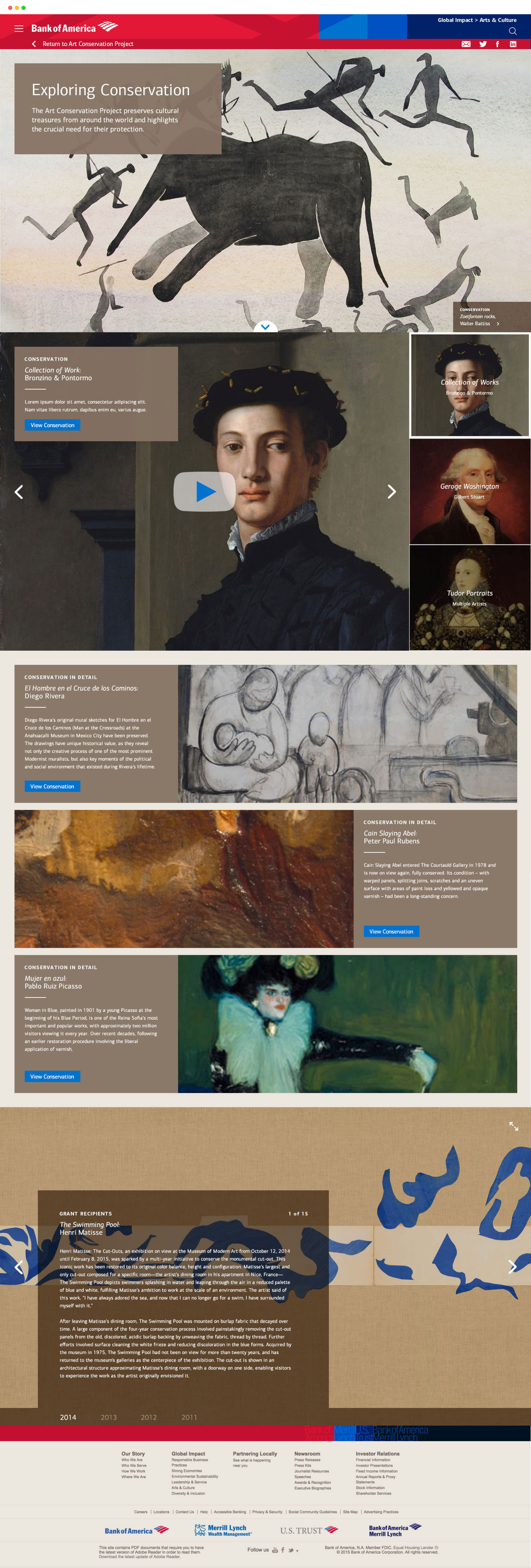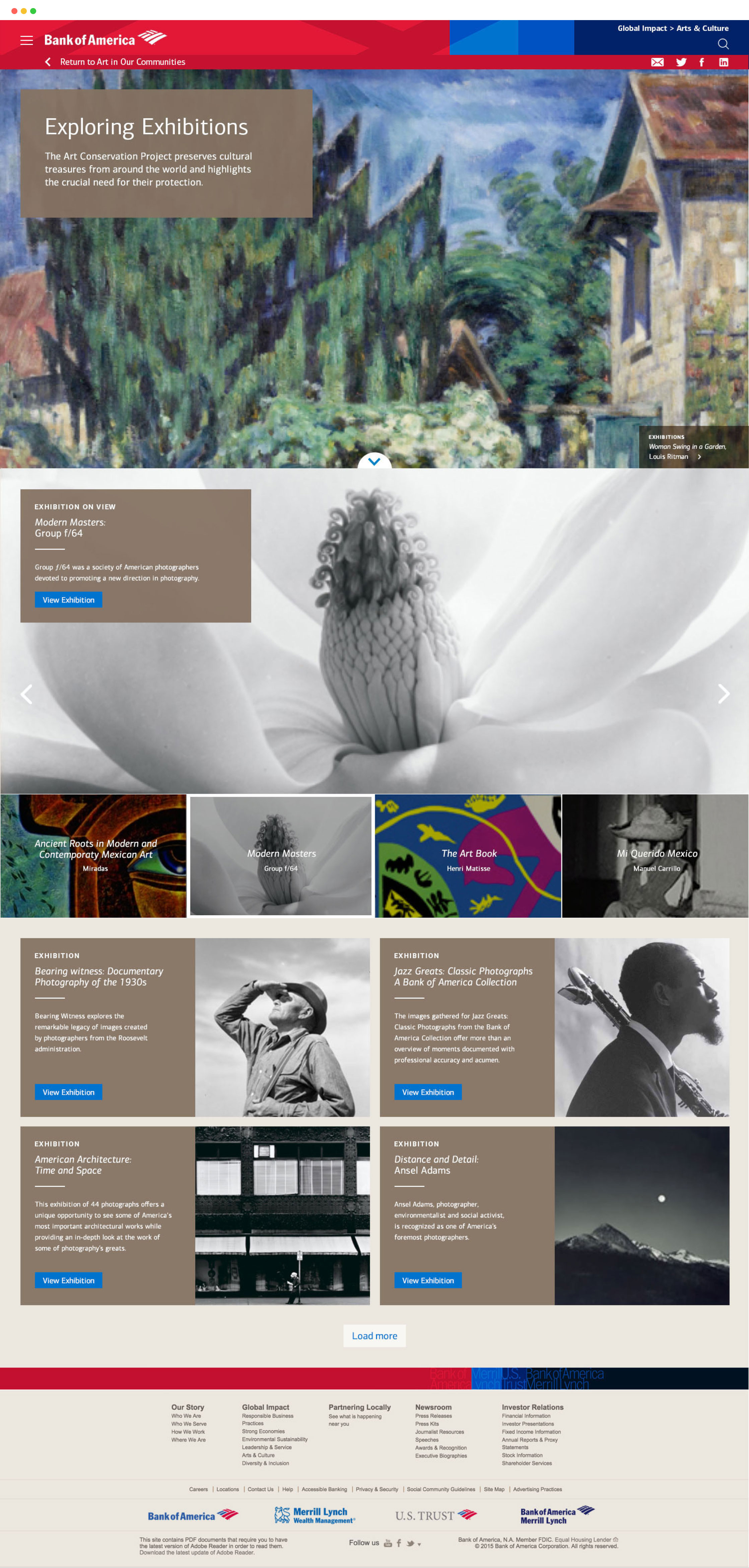 Bank of America is one of the largest contributor to the arts; each year they spend countless resources to support cultural initiatives. This previously underemphasized commitment to the arts is what we wanted to bring to life in the redesign of their online Art & Culture ecosystem.